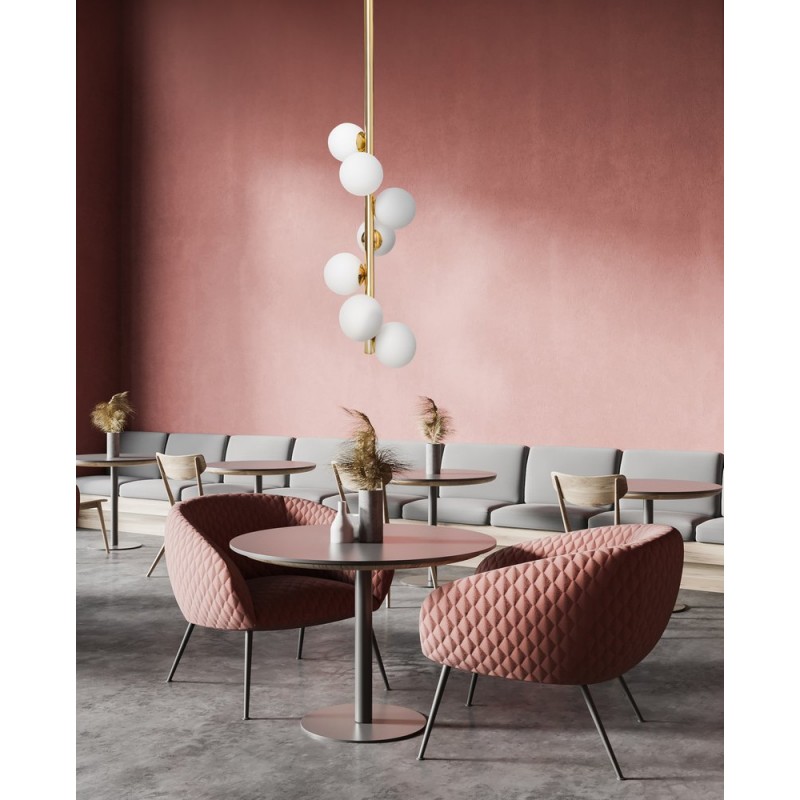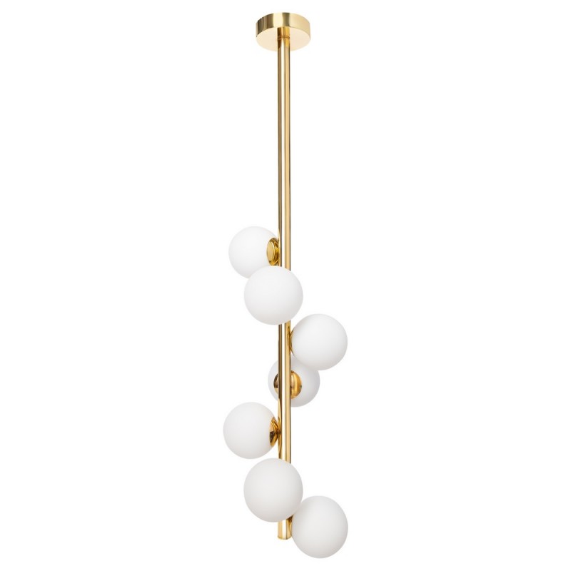 Cumulus Vertical 3 to lampa sufitowa przyciągająca wzrok swoim kształtem przypominającym białe obłoki. Mleczne klosze umieszczone na złotym stelażu tworzą jej niepowtarzalny charakter. Światło jest delikatnie zmiękczone i doskonale rozproszone co sprawia, że lampa idealnie odnajdzie się w salonie stanowiąc jednocześnie jego dekorację. Ponadczasowy design i nowoczesne wykończenie będzie pasować do wielu aranżacji - od klasycznych i nowoczesnych przez eleganckie, aż po wnętrza glamour lub art deco.