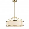 Nowoczesna lampa wisząca z transparentnym kloszem i abażurem w kolorze starego złota.