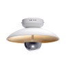 Nowoczesna lampa sufitowa w kolorze złota z mlecznymi kloszami.